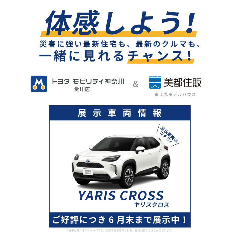 トヨタ ヤリスクロス展示中!【災害に強い家】もしもの時に電気の心配がない暮らし。