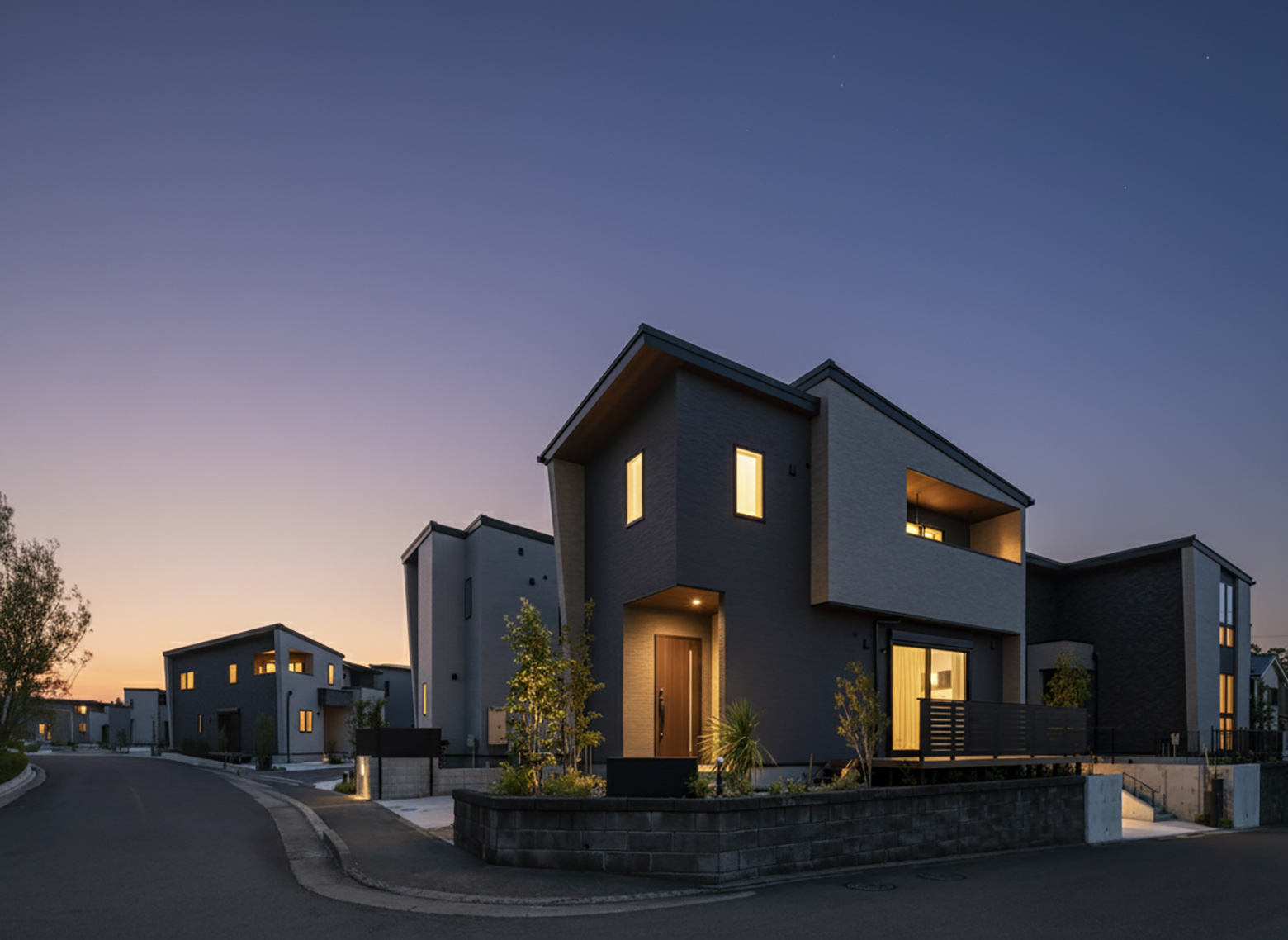 凛とした総タイル貼りの外観が彩る美しい街並み。毎日を楽しく、豊かに、寛ぎと暮らし心地にこだわった住まい。~キレイが続く総タイル貼り。快適・省エネ・ゼロエネルギー住宅~
