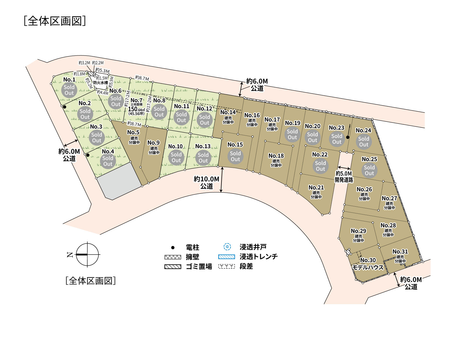 接道状況北西側約6.0m公道、東側約6.0m公道、西側約10.0m公道、分譲地内約5.0m開発道路