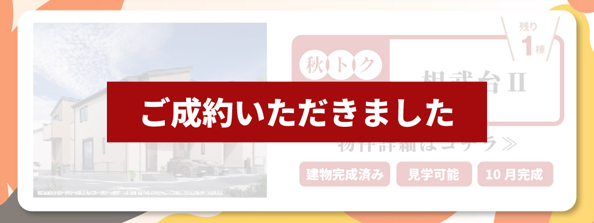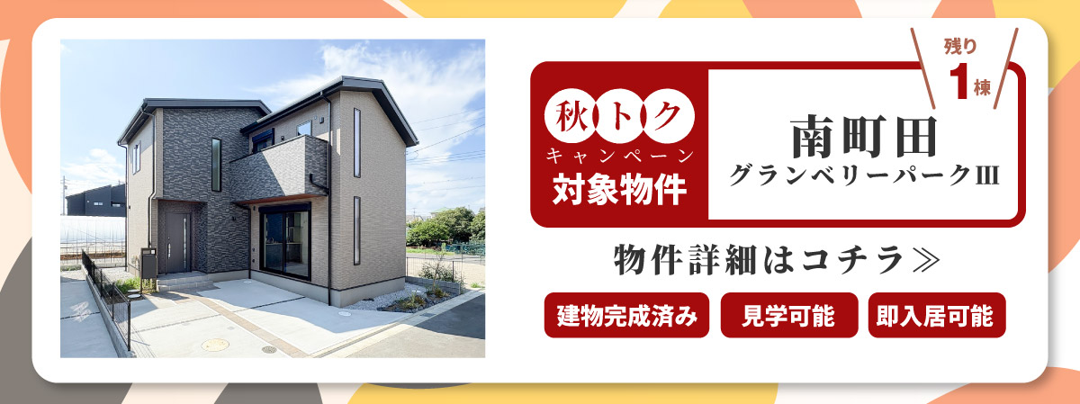 イベント イベント終了 【秋トクキャンペーン】スグ住める完成済み物件がおトクッ! 「おトクに、スグに新築に住みたい!」そんなお客様は必見!選べる特典がうれしい、キャンペーン付きのスグに住める新築物件をご紹介♪開催日時 ~2025年10月31日(金) スクロールして詳しく見る こちらのイベントは終了しましたので、他のイベントをご覧ください。 イベント一覧