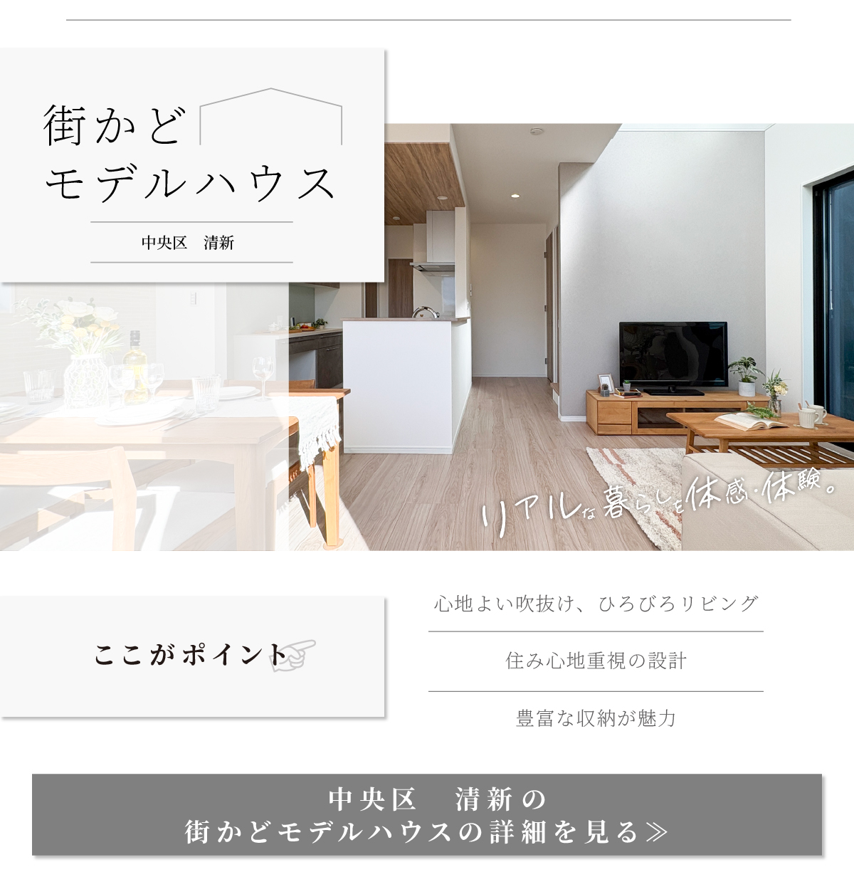 イベント 開催中 まずは完成物件が見たい!【街かどモデルハウス】 美都住販のお家を見てみませんか? それぞれのテーマでつくられた「街かどモデルハウス」を相模原・町田エリアの各地で公開しております! 今なら、美都住販の建てた住まいが見学できます。住宅の購入にはいろいろあるけれど「まずはお家が見たい!」が叶います。 注文住宅をご検討中の方も「美都住販のお家」見てみませんか?開催日時 毎日/見学予約は随時受付中! 会場街かどモデルハウススクロールして詳しく見る