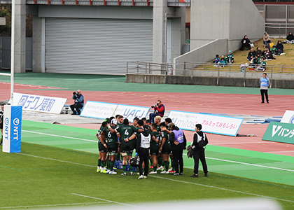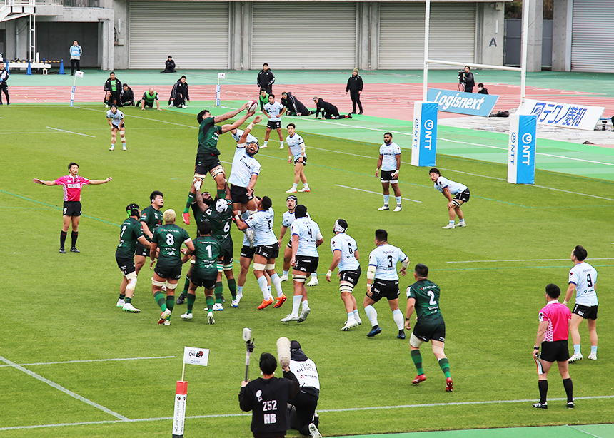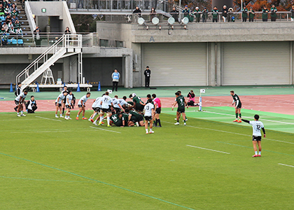 開始8分で最初のトライを決めると勢いそのままに、12対0と素晴らしい形で前半が終了。