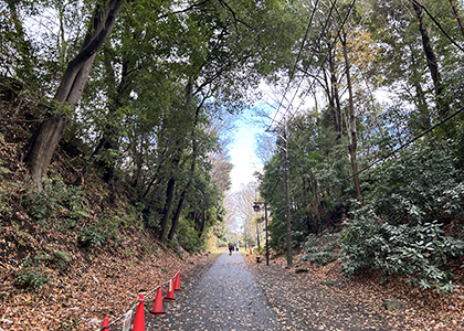 歩くのが気持ちいいスタジアム付近の緑道。