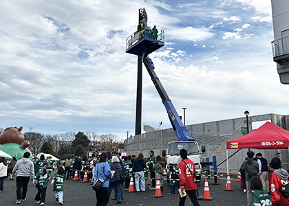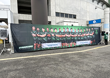 チームエンブレムが描かれた巨大フラッグを見ると、奮い立つ思いがしますね。