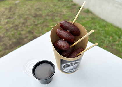 デザートは、ラグビ-のセンスとスピリットを伝えるプロジェクト「Daen」さんによる、ラグビーボール型焼きイモにしました。