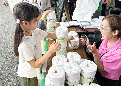 また大樹生命保険(株)さんのブースは、5秒でトイレットペーパーを積み上げた分だけお持ち帰りOKという、なんとも太っ腹なゲームが行われていました。