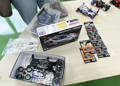 参加を申し込むと、ミニ四駆のキットが提供され、講習を受けながら製作。