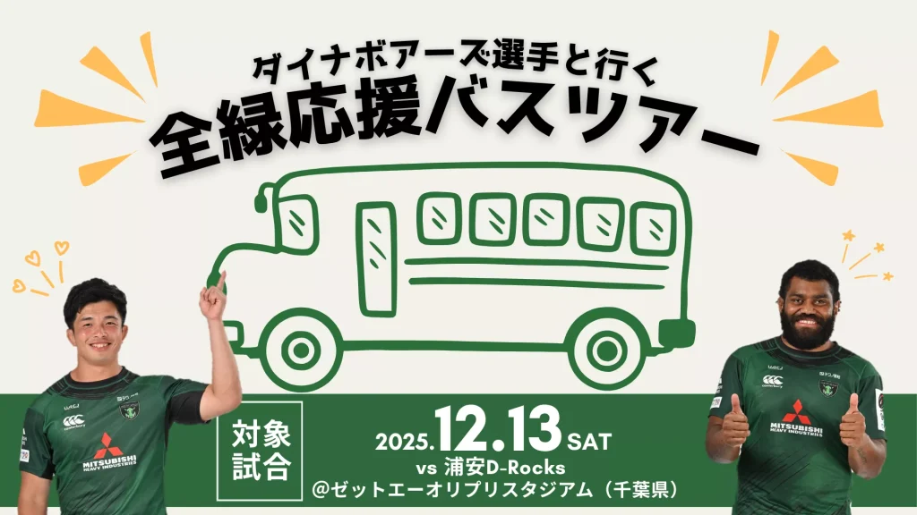 ビジターでの試合となりますが、この日は「ダイナボアーズ選手と行く全緑応援バスツアー」があるそうです↓↓↓