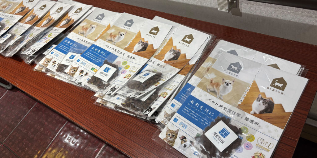 式の終了後には、私たちからささやかではありますが、チラシとわんちゃん用のおやつを配布させていただきました。