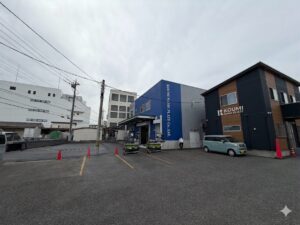 青のラインと縦文字表記の企業名がとても素敵な通常にはないスタイルです。