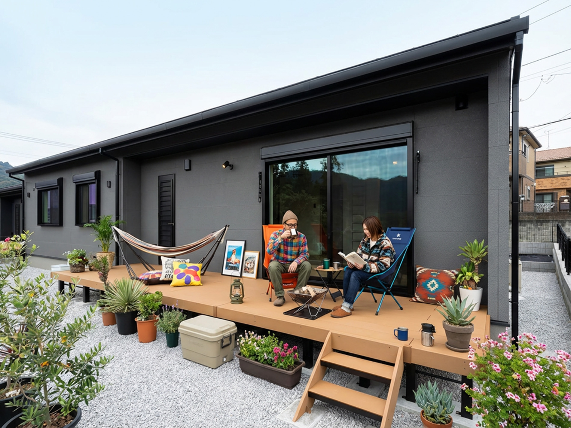 施工事例 アウトドア-平屋- 【GOOUT】プロデュースの家。Livin' HOUSE -リビンハウス- No.2 土地面積 265.74㎡(80.38坪) 建物面積 89.43㎡(26.99坪) 間取り 3LDK+ウッドデッキ+土間スペース+ロフト(5.0帖)+W.I.C+ランドリースペース+パントリー 前へ 一覧ページへ戻る その他の施工事例 豊かな暮らしを叶える、書斎がある3SLDK ~Eterno~ 総タイル貼りの家 明るい陽射しが降りそそぐ、家族のふれあいが深まる家 モダンデザイン 子育て世帯にフィットする、ひろびろリビングと豊富な収納がある住まい。 総タイル貼りの家 毎日を、もっと楽しく、もっと快適に。 寛ぎと暮らし心地にこだわった住まい。 総タイル貼りの家